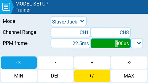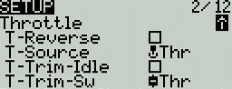 In the following example our model is a glider. Gliders don't need throttle trim. We also don't need the rudder trim, because we can adjust the rudder with the servo sub trim.