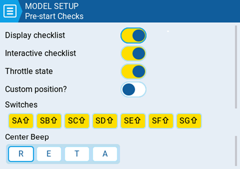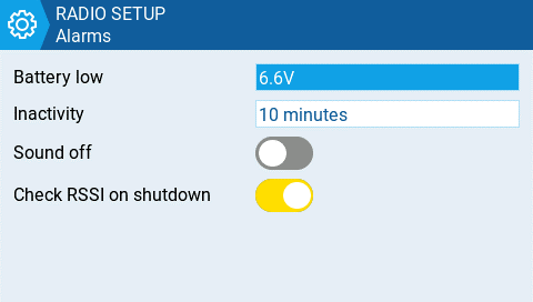 This How-To shows the configuration of a low voltage battery alert. Let's assume we have a model that is using a 2S Lipo RX battery. We want to configure an alerts when the battery voltage drops below 7.4V.