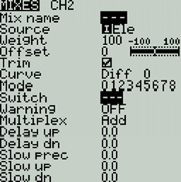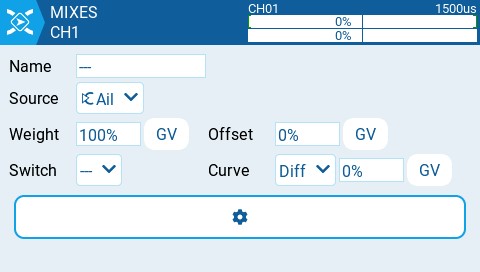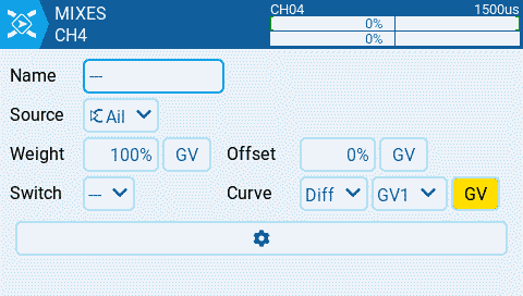 Step 4: Now we can adjust our aileron mixer and use the GV1 value for the differential