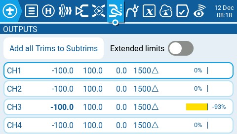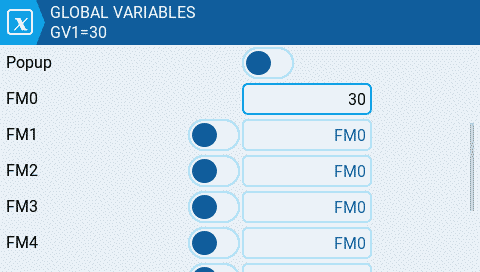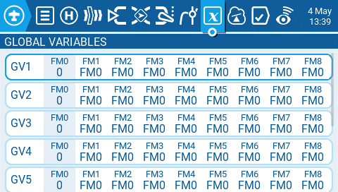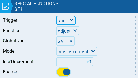 after those 2 special functions are created you can already test the functionality. When you go to Global Variables page you can monitor the GV1 value. The value should change as you use the trims.