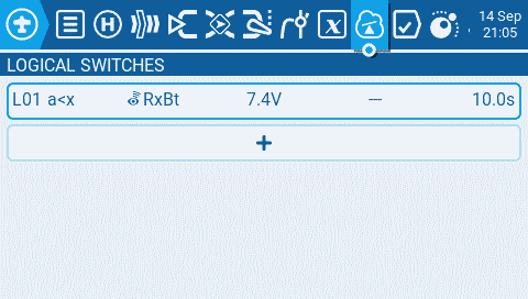 This logical switch will activate when the TX battery is below 7.4V for the duration of 10 seconds.
