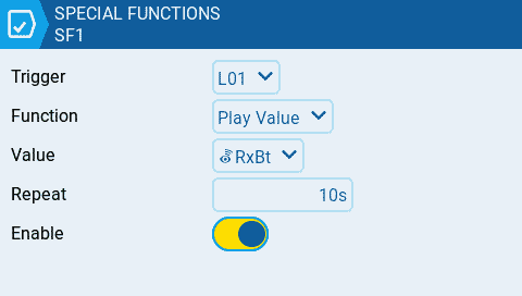 Step 2: Create a Special Function that announces the battery value once the logical switch is activated.